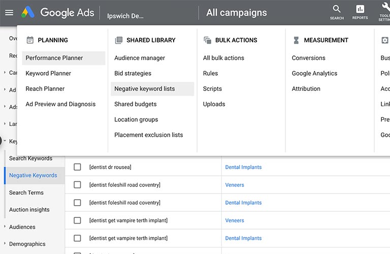 This dental practice is located in Ipswich, Suffolk. The competition is average but more sparse than other locations – this means at higher budgets we had to target more broadly.